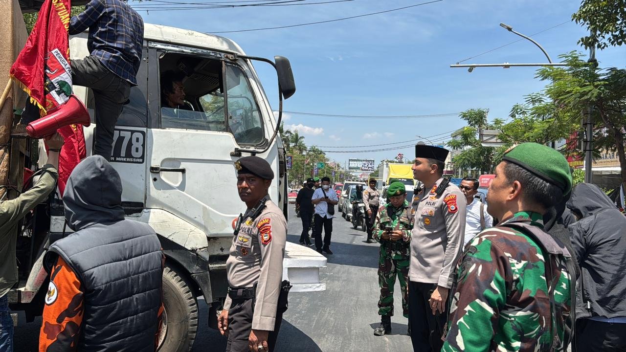 GOWA | STC – Kapolres Gowa AKBP Muhammad Aldy Sulaiman, S.I.K, M.Si, bersama Dandim 1409/Gowa LETKOL. INF. Heri Kuswanto turun langsung mengawal jalannya aksi unjuk rasa yang digelar Mahasiswa A...