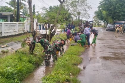 TAKALAR| SNIPERTUNTAS.COM-Budayakan semangat gotong royong wujudkan kebersihan lingkungan, Personel Koramil 1426-03/Galut, Kodim 1426/Takalar bersama warga melaksanakan kegiatan pembersihan pinggir ja...
