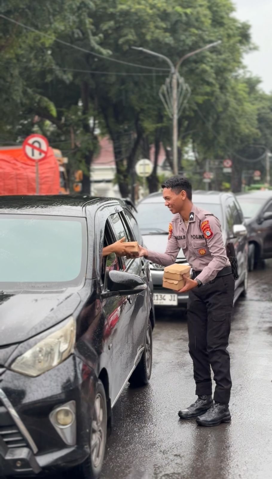 Jarum jam menunjukkan pukul 16.30 Wita. Arus kendaraan yang melintas perlahan diperlambat, bukan untuk razia, melainkan untuk menerima paket takjil dari tangan-tangan aparat yang sore itu tampil dengan wajah ramah dan penuh senyum.