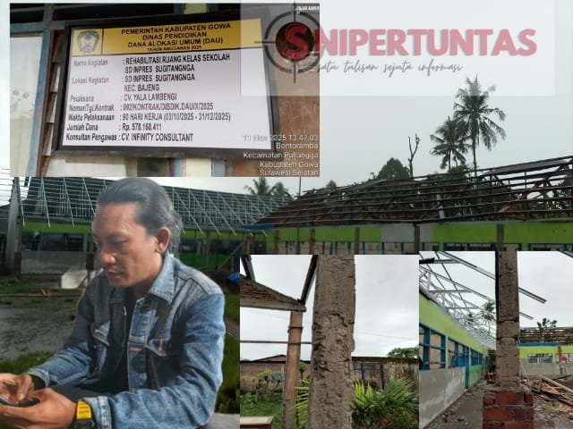 GOWA| SNIPERTUNTAS.COM-Divisi Investigasi Lembaga Swadaya Masyarakat Pembela Rakyat LSM (PERAK), Rahman Samad, menyoroti pelaksanaan kegiatan rehabilitasi Sekolah Dasar Inpres Sugitangnga yang terletak di Bajeng, Kabupaten Gowa. Proyek yang dikerjakan oleh CV. Yala Lambengi ini diduga tidak sesuai dengan spesifikasi teknis yang telah ditetapkan.