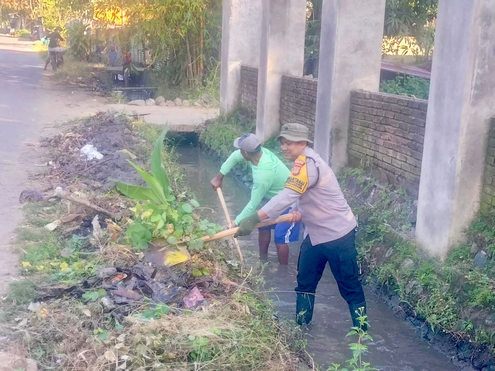 Dengan semangat gotong royong, mereka bahu-membahu membersihkan saluran irigasi dari endapan tanah serta tumpukan sampah yang menghambat aliran air.