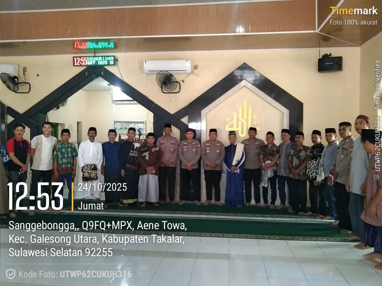 TAKALAR | SNIPERTUNTAS.COM- Dalam rangka mempererat silaturahmi dan mendengar langsung aspirasi masyarakat, Polres Takalar melalui Kasat Binmas AKP Achmad Koembara, S.H., M.H. bersama Kapolsek Galut IPTU Agusalim Gama, S.H. melaksanakan kegiatan Jumat Curhat di Masjid Nurul Huda, Dusun Sagge Bongga, Desa Aeng Towa, Kecamatan Galesong Utara, Kabupaten Takalar, Jumat (24/10/2025) sekitar pukul 12.00 Wita.
