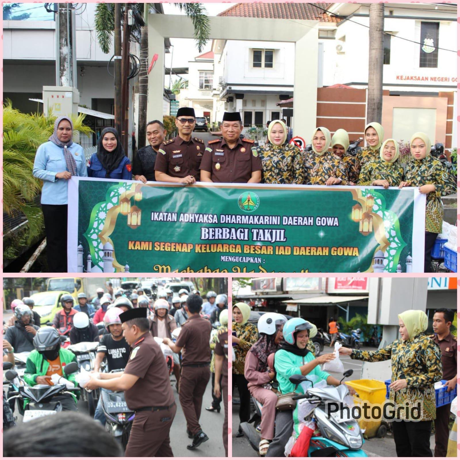 Para pegawai Kejari Gowa bersama anggota IAD tampak antusias turun langsung membagikan takjil kepada pengendara roda dua, roda empat, serta masyarakat sekitar