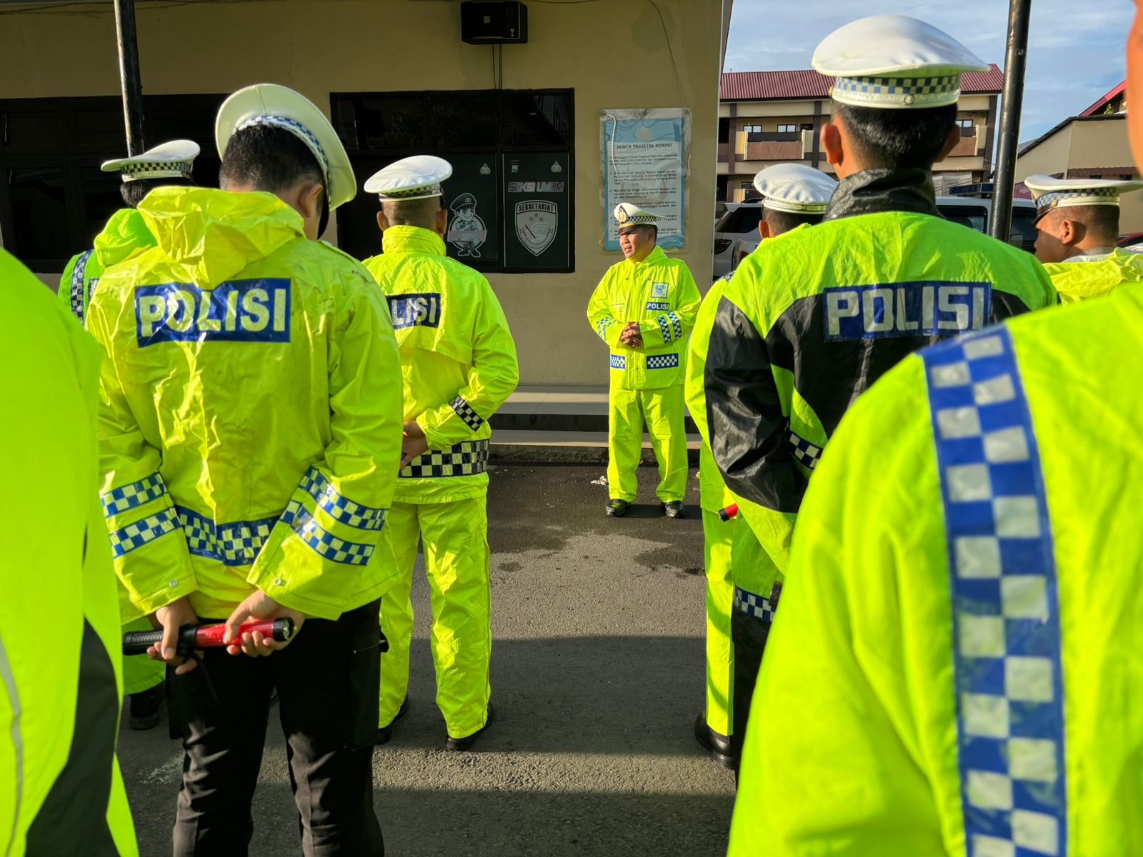 “Setiap personel harus siap dalam kondisi apapun, termasuk saat hujan deras. Jas hujan wajib disiapkan agar kegiatan pelayanan dan pengamanan lalu lintas dapat terus dilakukan dengan maksimal,” ujarnya.
