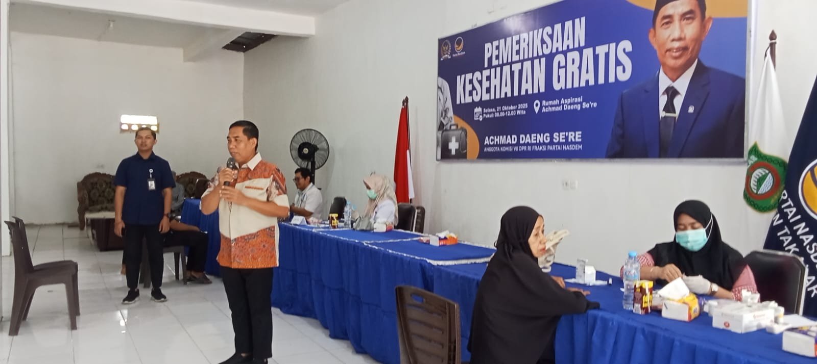 ‎TAKALAR | SNIPERTUNTAS.COM- Anggota DPR RI Komisi VII dari Fraksi Partai NasDem, Achmad Daeng Se’re, menggelar kegiatan pemeriksaan kesehatan gratis di Rumah Aspirasi Partai NasDem, Jalan Poros Jenderal Sudirman, Kecamatan Pattallassang, Kabupaten Takalar, Selasa (21/10/2025).