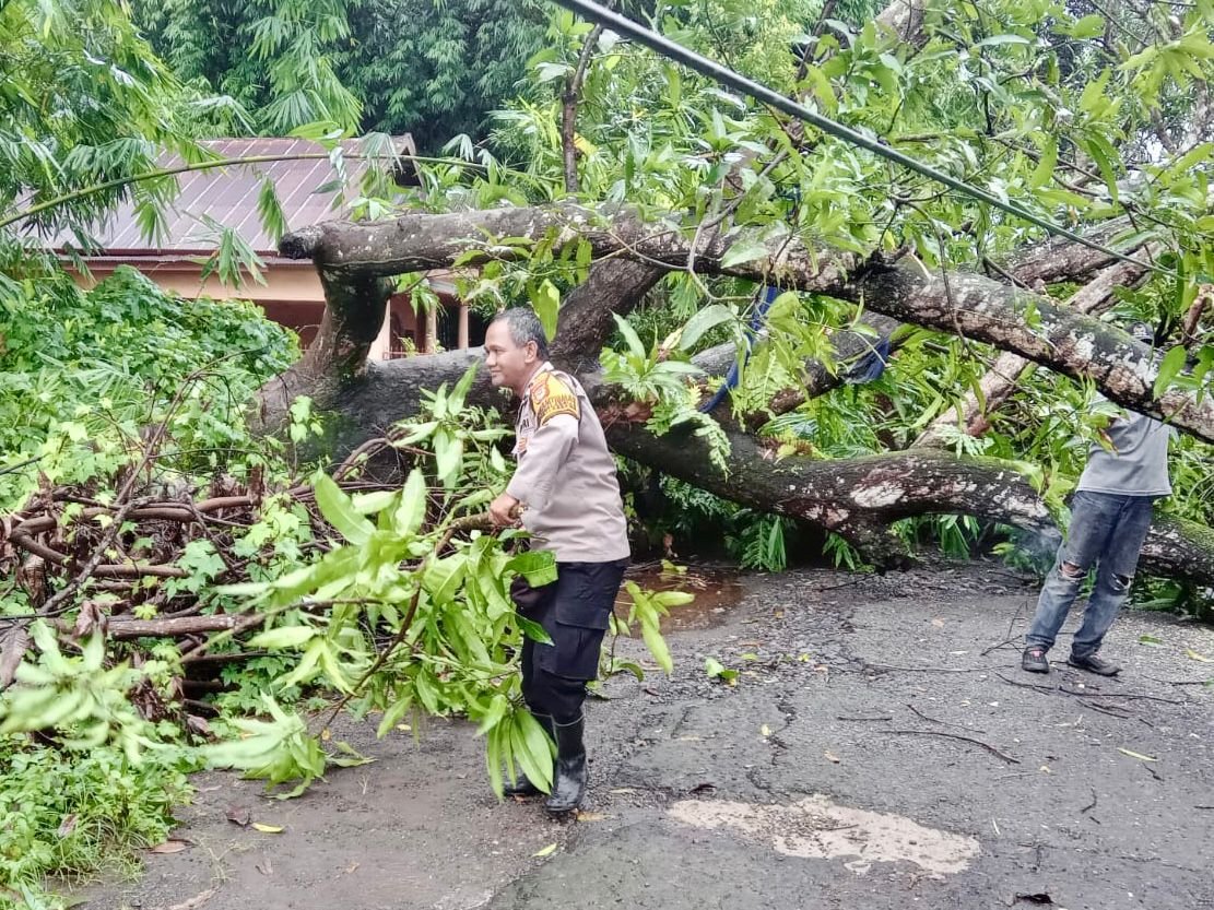 Selain melakukan pembersihan, AIPTU Ilham juga menyampaikan imbauan kamtibmas kepada warga agar senantiasa memantau kondisi lingkungan masing-masing, dan meningkatkan kehati-hatian saat terjadi hujan lebat disertai angin kencang.