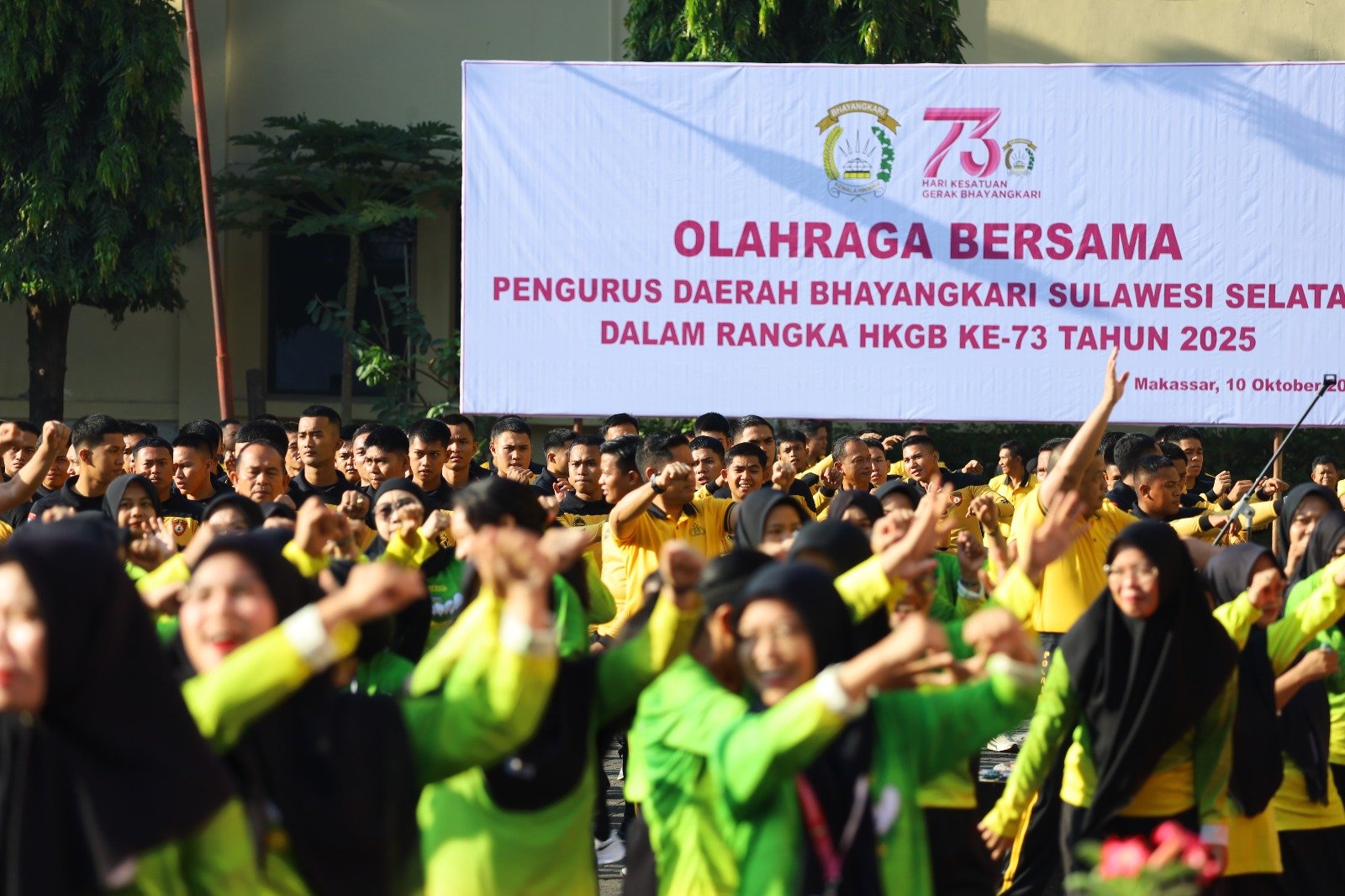 SULSEL | SNIPERTUNTAS.COM- Dalam rangka memperingati Hari Kesatuan Gerak Bhayangkari (HKGB) ke-73 Tahun 2025, Bhayangkari Daerah Sulawesi Selatan bersama Bhayangkari Cabang menggelar kegiatan olahraga bersama yang berlangsung di Lapangan Apel Belakang Mapolda Sulsel, Jumat (10/10/25).